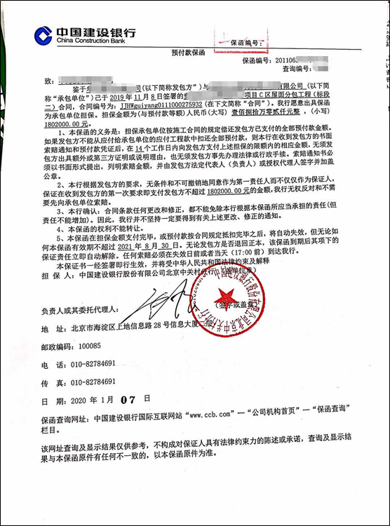 预付款担保的主要形式为银行保函。其主要作用是保证承包人能够按合同规定进行施工,偿还发包人已支付的全部预付金额。如果承包人中途毁约,中止工程,使发包人不能在规定期限内从应付工程款中扣除全部预付款,则发包人作为保函的受益人有权凭预付款担保向银行索赔该保函的担保金额作为补偿。